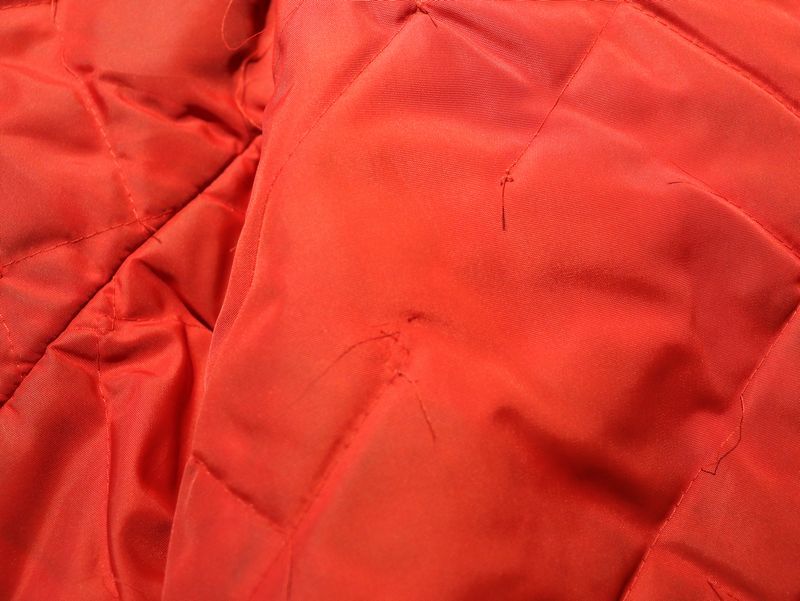 タグ、ライニングに汚れ、ライニングに糸飛び、